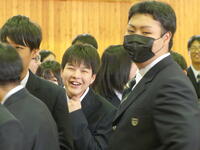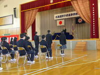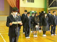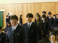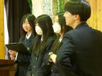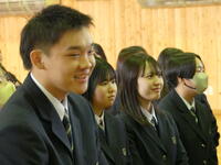 3年生が卒業にあたり、訓子府高校同窓会入会式を行いました。訓子府高校同窓会会長 古沢栄一様から、同窓会入会の宣言とともに卒業生にお祝いの言葉・記念品が贈られました。